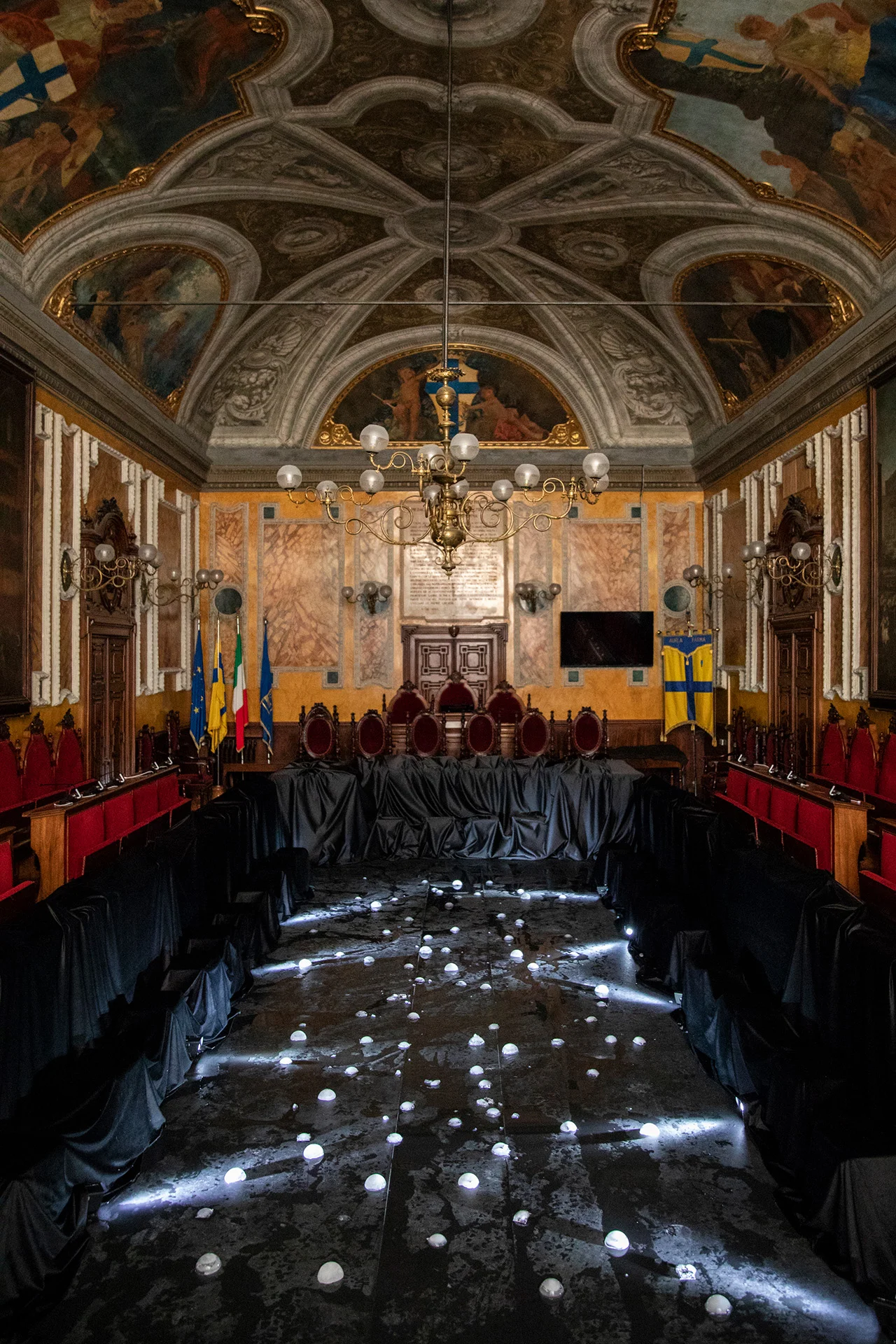 In the three-year period 2022-2024, Lenz's artistic investigation on the themes of the Resistance and the Holocaust focused on the role and biographies of the Partisan Women of the Parma Resistance and in particular was dedicated to the ‘Little ones’, the very young partisans, little more than teenagers during the years of the Resistance, of which historical research has managed to recover/preserve only slender documentary traces. In 2024 on the occasion of the April 25th Celebrations, Maria Federica Maestri and Francesco Pititto curated the site-specific macro-installation inside the Parma City Council Hall.