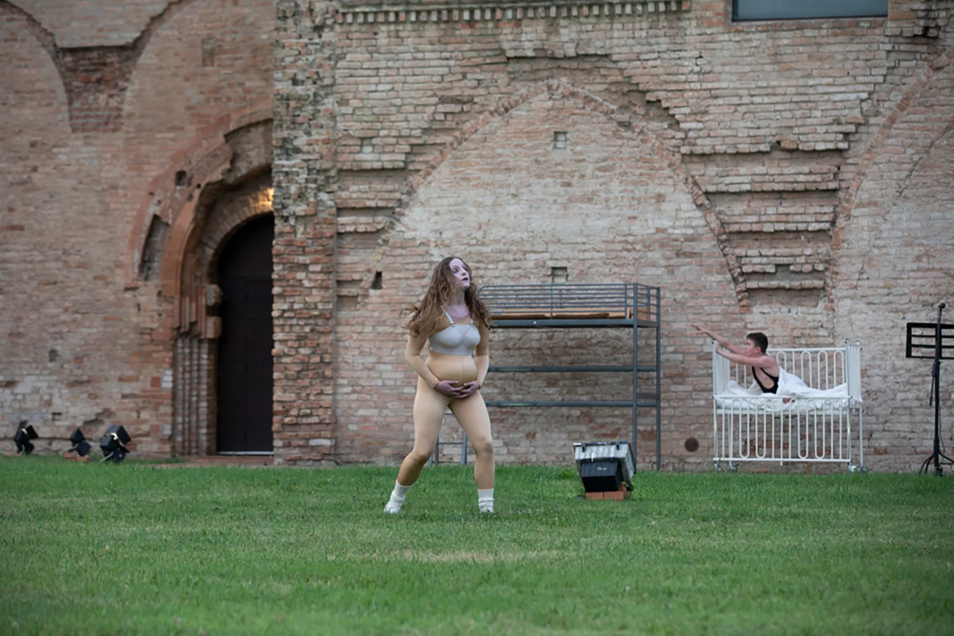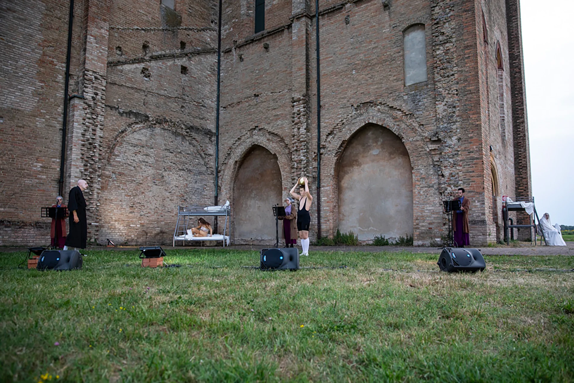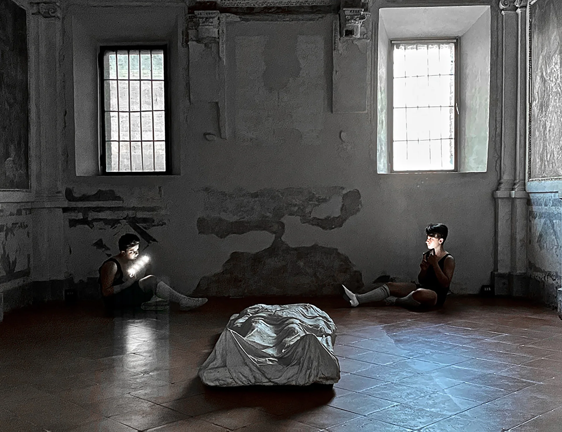 The spatial transposition of the multiple conceptual, emotional, moral fields manifested in the monumental Fabbrica of the Abbey of Valserena will give plastic volume to the dramaturgical oscillation between reality and dream, between freedom and constraint, between self-determination and destiny, between sacrifice and redemption, between truth and fiction. Sensitive actors, Lenz's historical actresses and child performers are called to interpret the complexity of the work, guardians of an aesthetic perimeter that claims the cold beauty of the margin, the languid power of loss, the dry physics of suffering. Together with them, witnesses of the symmetrical vicissitude of the Via Crucis, the singers engaged vocally in the chorales and arias of Johann Sebastian Bach's St. Matthew Passion, in dialogue with the soundscape created by the electronic composer Claudio Rocchetti. Through the multiple artistic forms – installation, performance, video projection, musical dramaturgy between baroque, modern and contemporary – this disturbing, noisy, disorganized, disheveled dimension expands beyond the boundaries of the subject and is transfused into a new common time free from conventions and by social norms, necessary to imagine, or dream, a possible poetic transformation of reality.