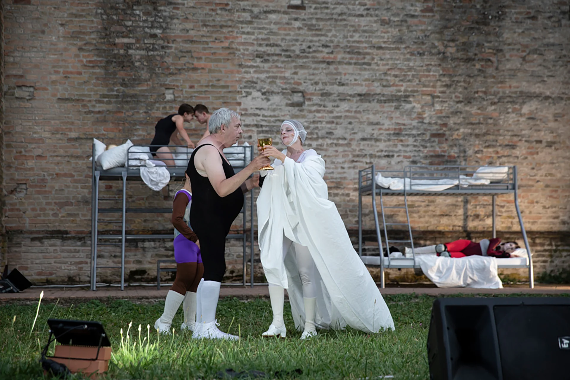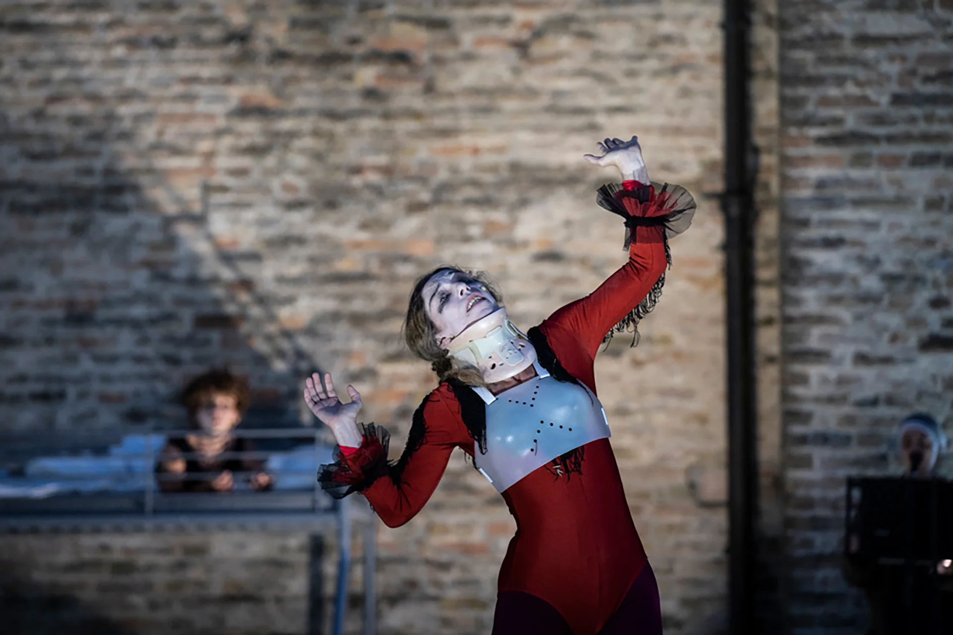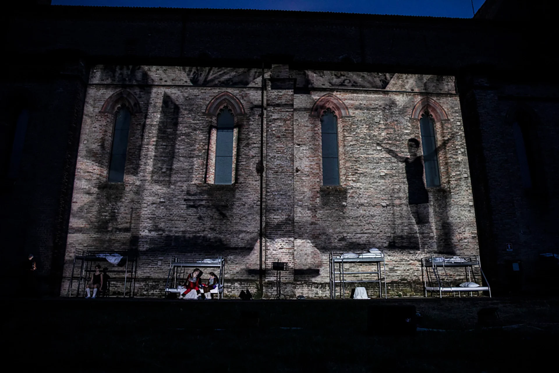 The spatial transposition of the multiple conceptual, emotional, moral fields manifested in the monumental Fabbrica of the Abbey of Valserena will give plastic volume to the dramaturgical oscillation between reality and dream, between freedom and constraint, between self-determination and destiny, between sacrifice and redemption, between truth and fiction. Sensitive actors, Lenz's historical actresses and child performers are called to interpret the complexity of the work, guardians of an aesthetic perimeter that claims the cold beauty of the margin, the languid power of loss, the dry physics of suffering. Together with them, witnesses of the symmetrical vicissitude of the Via Crucis, the singers engaged vocally in the chorales and arias of Johann Sebastian Bach's St. Matthew Passion, in dialogue with the soundscape created by the electronic composer Claudio Rocchetti. Through the multiple artistic forms – installation, performance, video projection, musical dramaturgy between baroque, modern and contemporary – this disturbing, noisy, disorganized, disheveled dimension expands beyond the boundaries of the subject and is transfused into a new common time free from conventions and by social norms, necessary to imagine, or dream, a possible poetic transformation of reality.