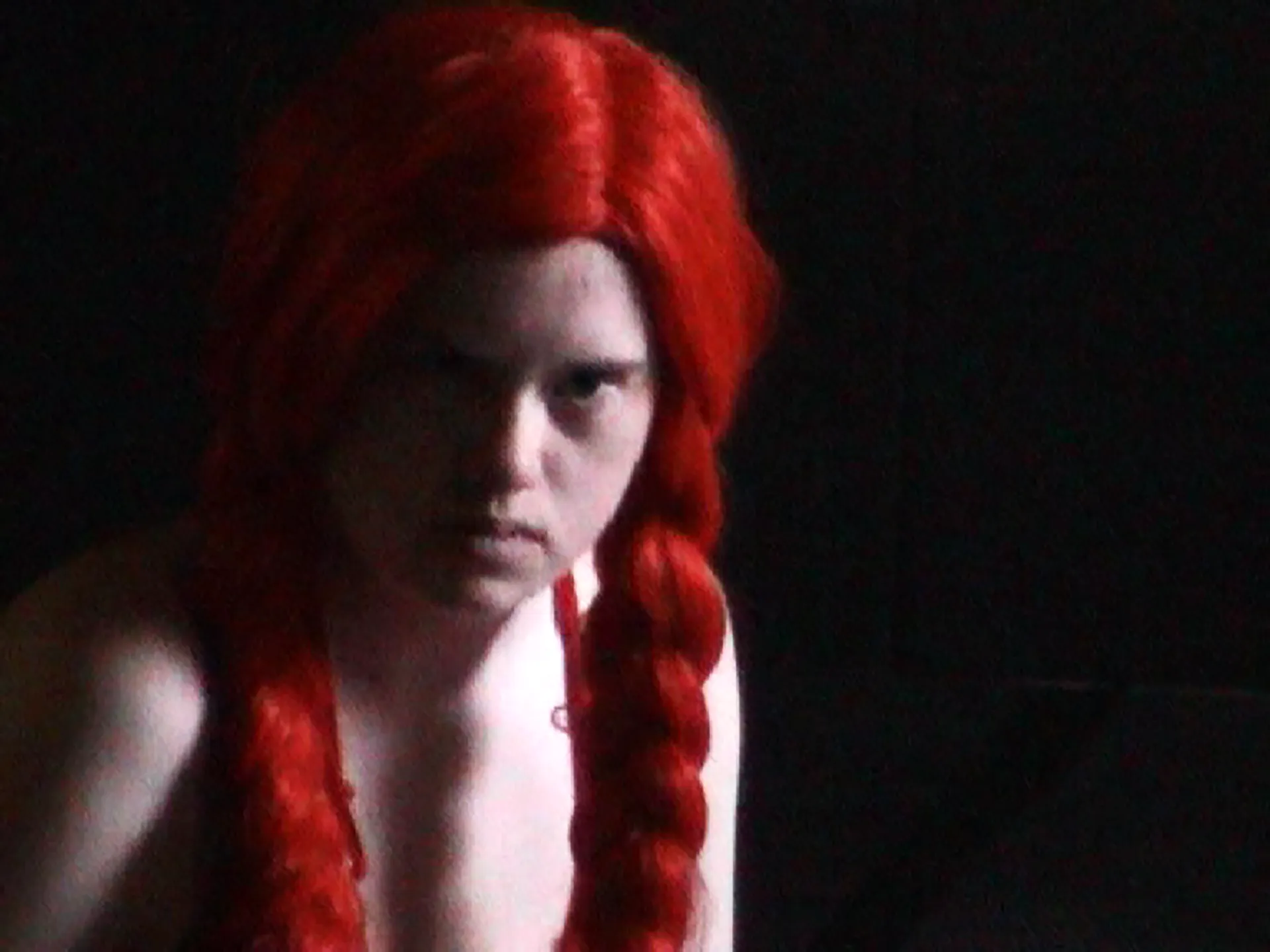 Combinations of fear and violence in the red child's crooked path. Food disturbance and sex in the forest dominated by the gray wolf. Sacrifice of both to keep faith with the law and Christian table. Fear of infant death and terror of adulterated life trap the hooded woman in her blush. Hood that veils the modesty of feeling the passion of cake, masked. The seemingly doomed little girl is curious to swallow what food can no longer give. She renounces duty and alone in the darkness of black is ready to die, just to touch what hides the great of eyes, ears, hands, mouth. The red omen of blood is fulfilled in the hungry leap, in the preyed body, in the bottom of the desired wolf.