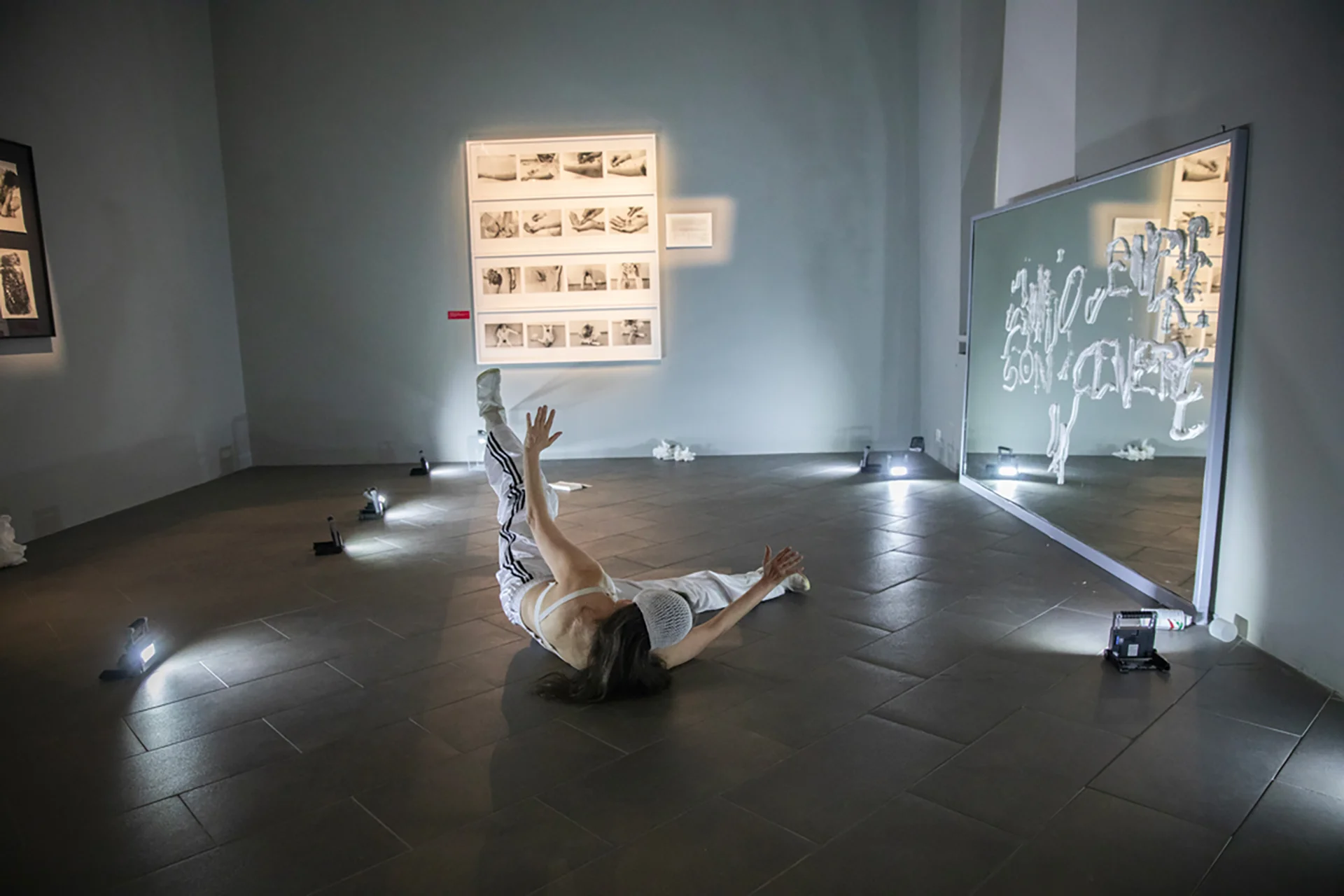 Some digital images come from the tests that precede the actions, some in the theater and others in the room where the Observations were exhibited. They undergo a passage on Polaroid film – the only one that allows you to immediately participate in the birth of the analogue image - which blurs its contours, dimensions and frames.