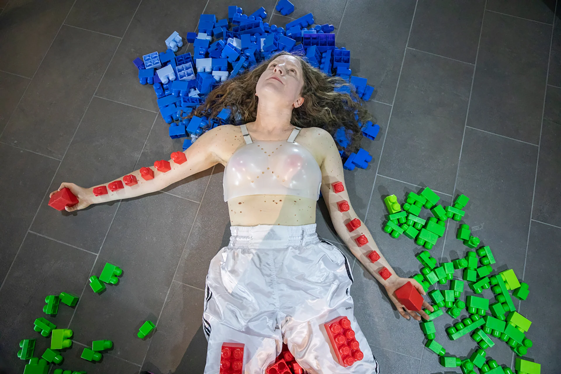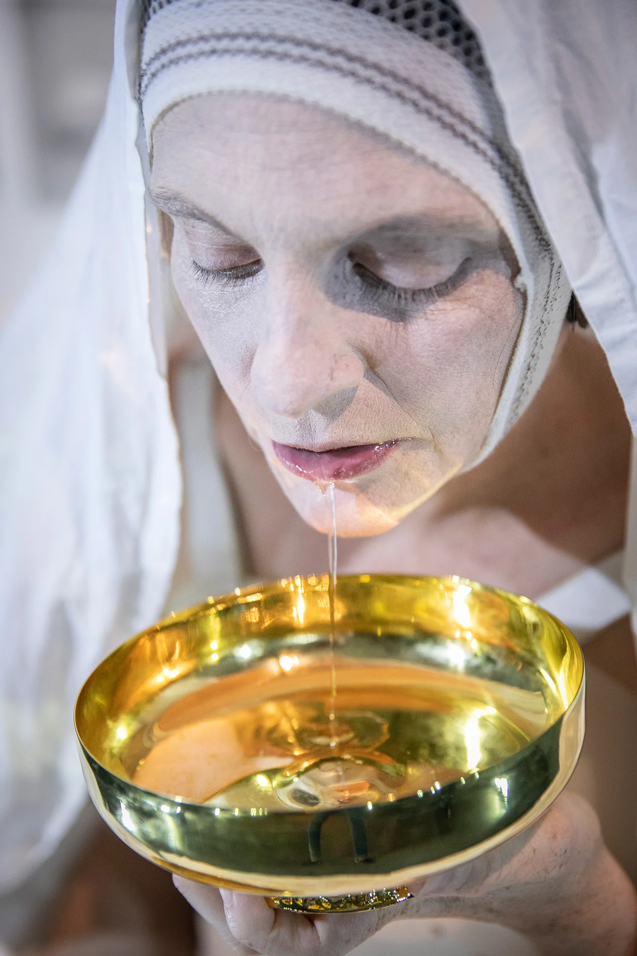 Being able to be directly inspired by one of the reference artists of your creative path is both an aesthetic trap and a conceptual refuge. I will not try to stay in balance, well balanced between the parts, but I will oscillate in ‘partition’, divided between the painful memory of her wounds – the sentimental terrorism of Gina Pane – and the poetry of the sacred joy-generating force of her latest works. To fall and get up we will be multiple bodies, exorcists and adventurers of our underwater world. The scene dedicated to Gina Pane is not the canvas on which to paint the wound in dark colours, but the living space in which to erect the monument to the body neither tamed nor subjected to the profitable functioning of the discriminating ableism of our time.