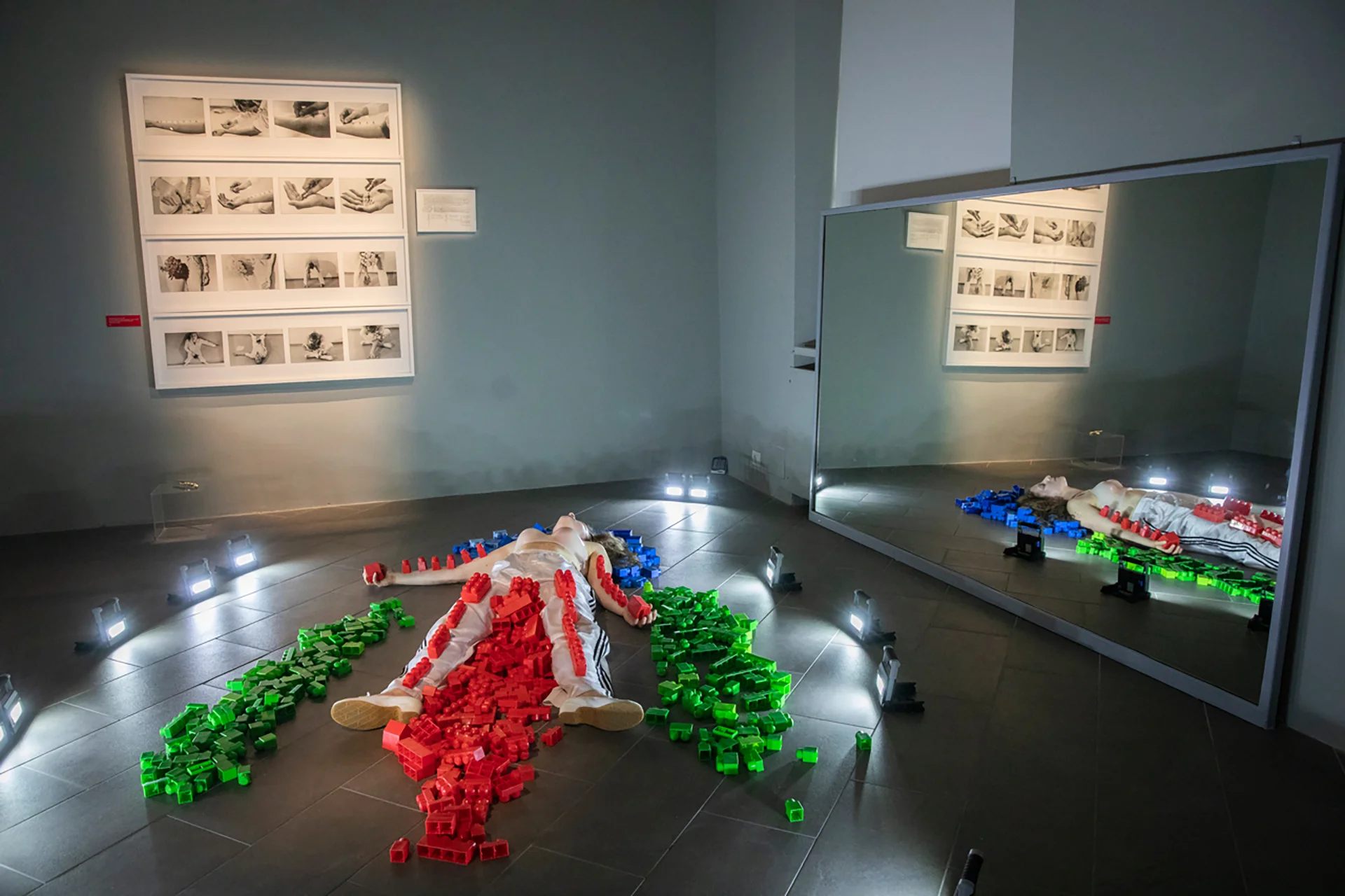 Photography has always been present as well as the theme of the sacred in every performative action, or installation where the body of Gina Pane is not there, but where always photographic images – together with strongly symbolic objects – refract, in the here and now of the common space of Partitions, the previous actions.