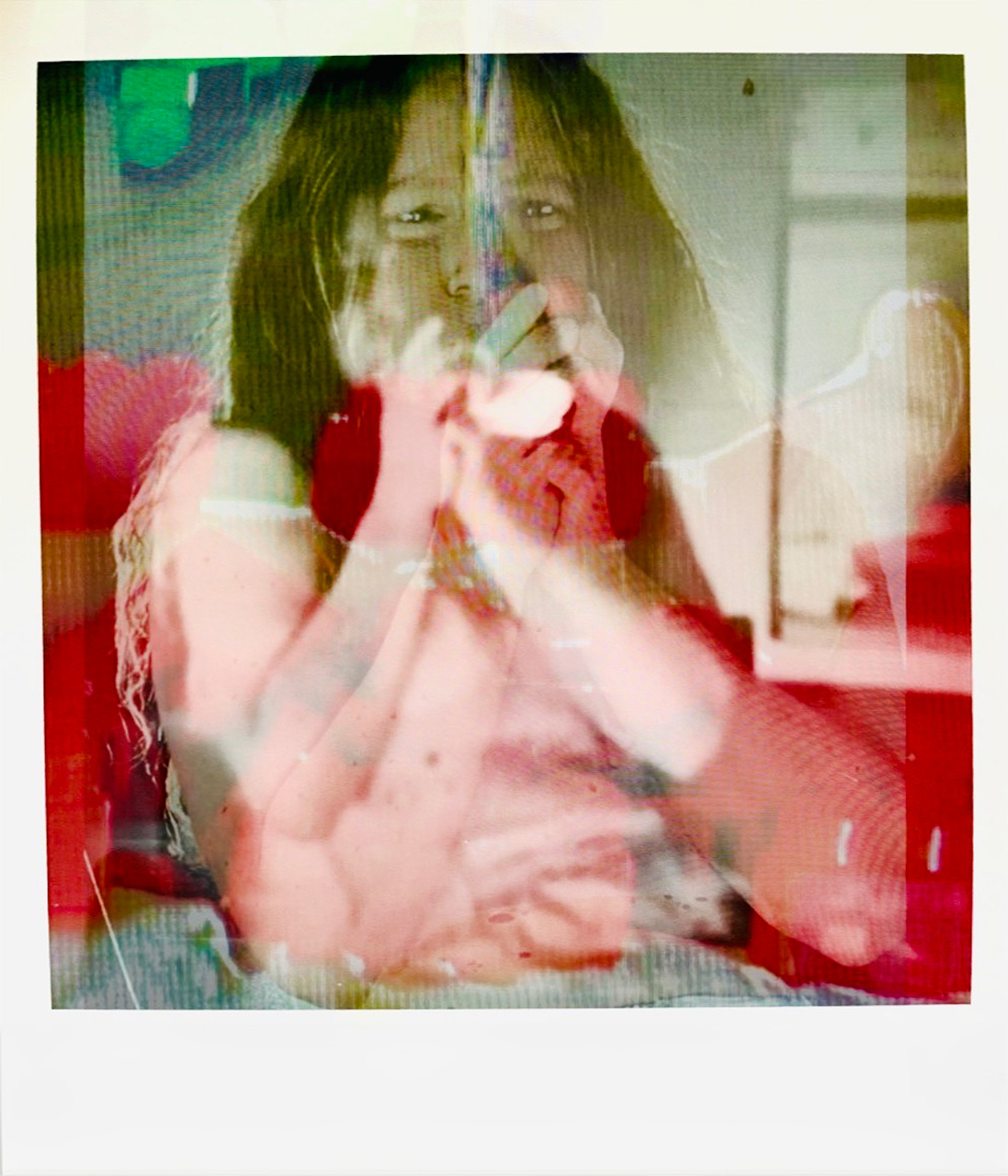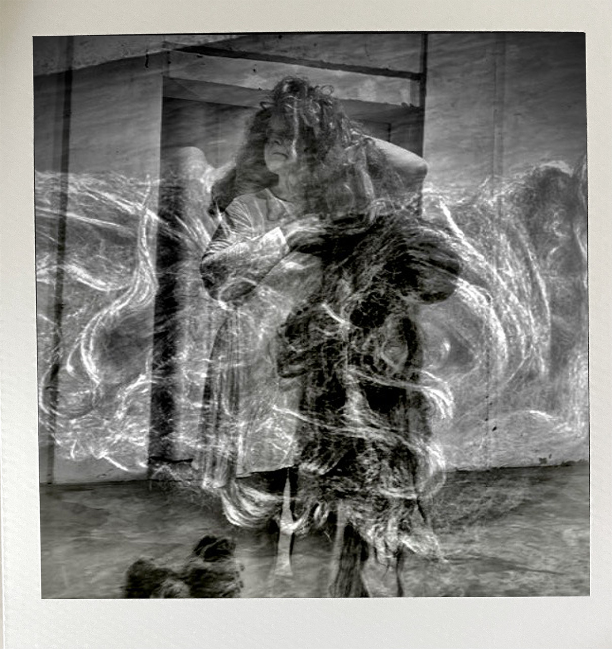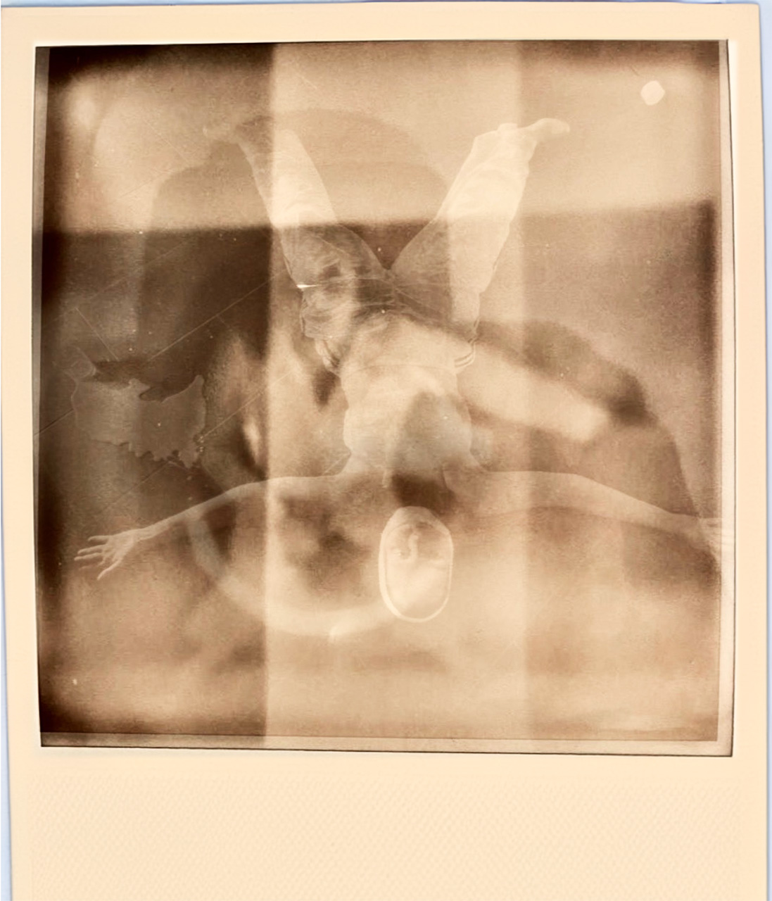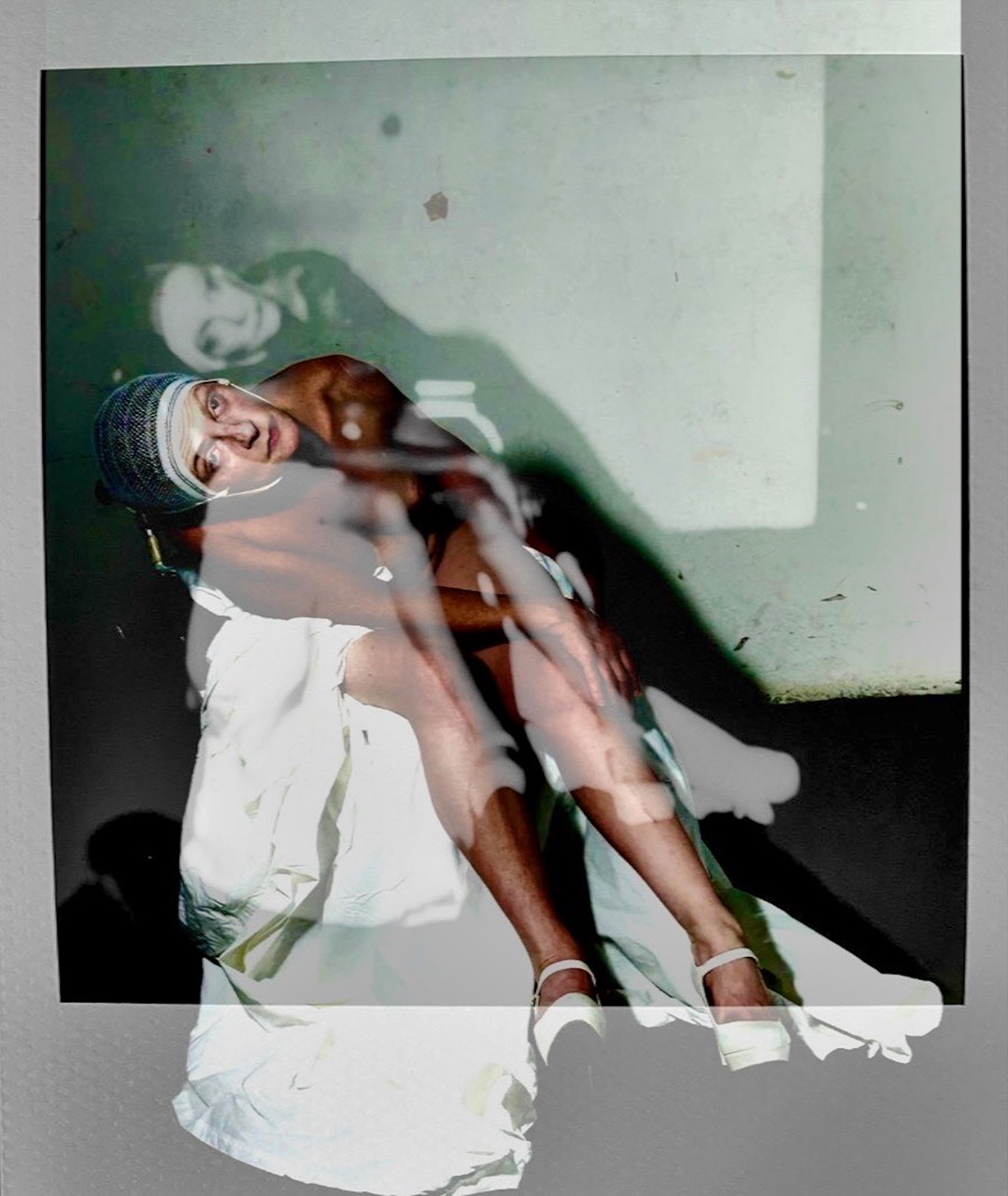 Re-photographed again, even from the screen, with overlaps that sometimes emerge from the square format of the Polaroid in a space-time flow that tends towards the impossible embrace, as in Partitions, between past and present. Then placed permanently in the square artifact of a false digital polaroid.