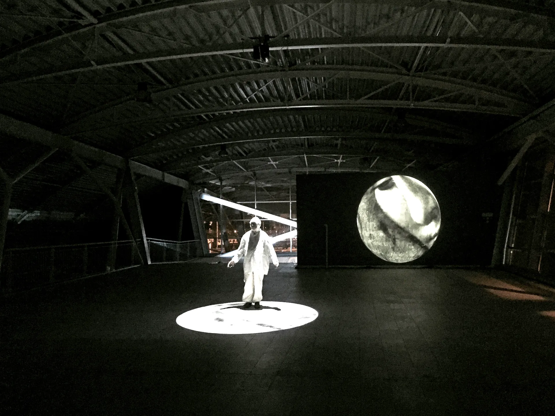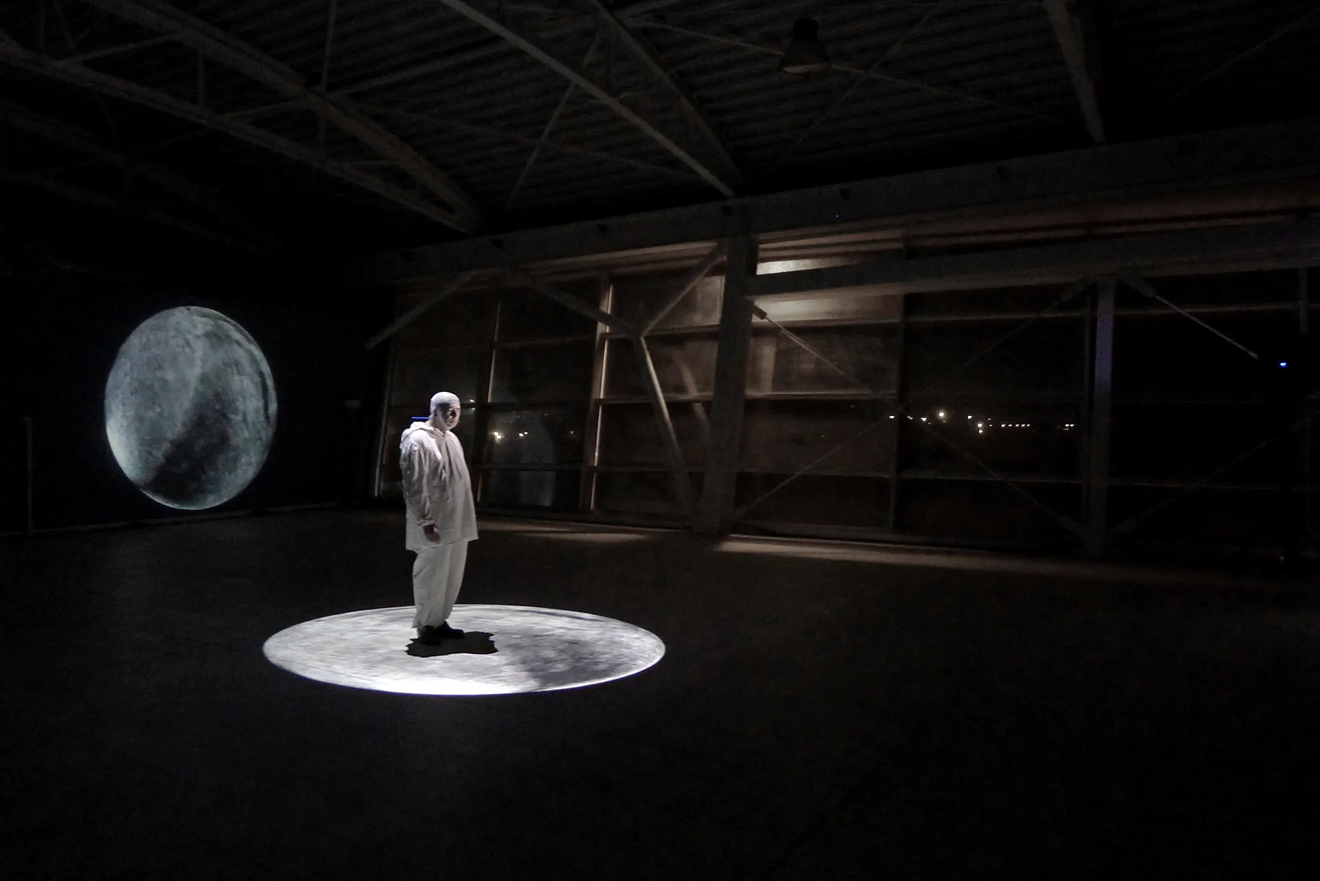 And there is no more speech, only song, vision, pure intuition, abandonment, silence. The image of the blessed unborn child, in his likeness, the reflection and nostalgia of returning to being a Person bursts upon Dante/Paolo. The glass and steel monument, a cumbersome testimony of the human limit, is inhabited by a multitude of different spirits, of unlimited desire to tend upwards, beyond the limit of the space/time of the Laudi, beyond the music of the Master, beyond the language that still confines them in a timeless representation, between flashes of images of water, rotating spheres and divine advent.