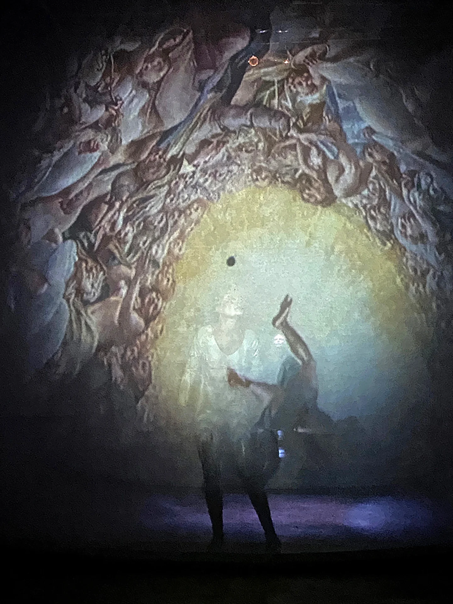 The images report a time that implodes, like the angel looking at us falling backwards or falling upwards, like galaxies showing themselves as they once were billions of years ago, like a reversal of linearity that proceeds towards the appearance of the first face, from the chaos of the first day.