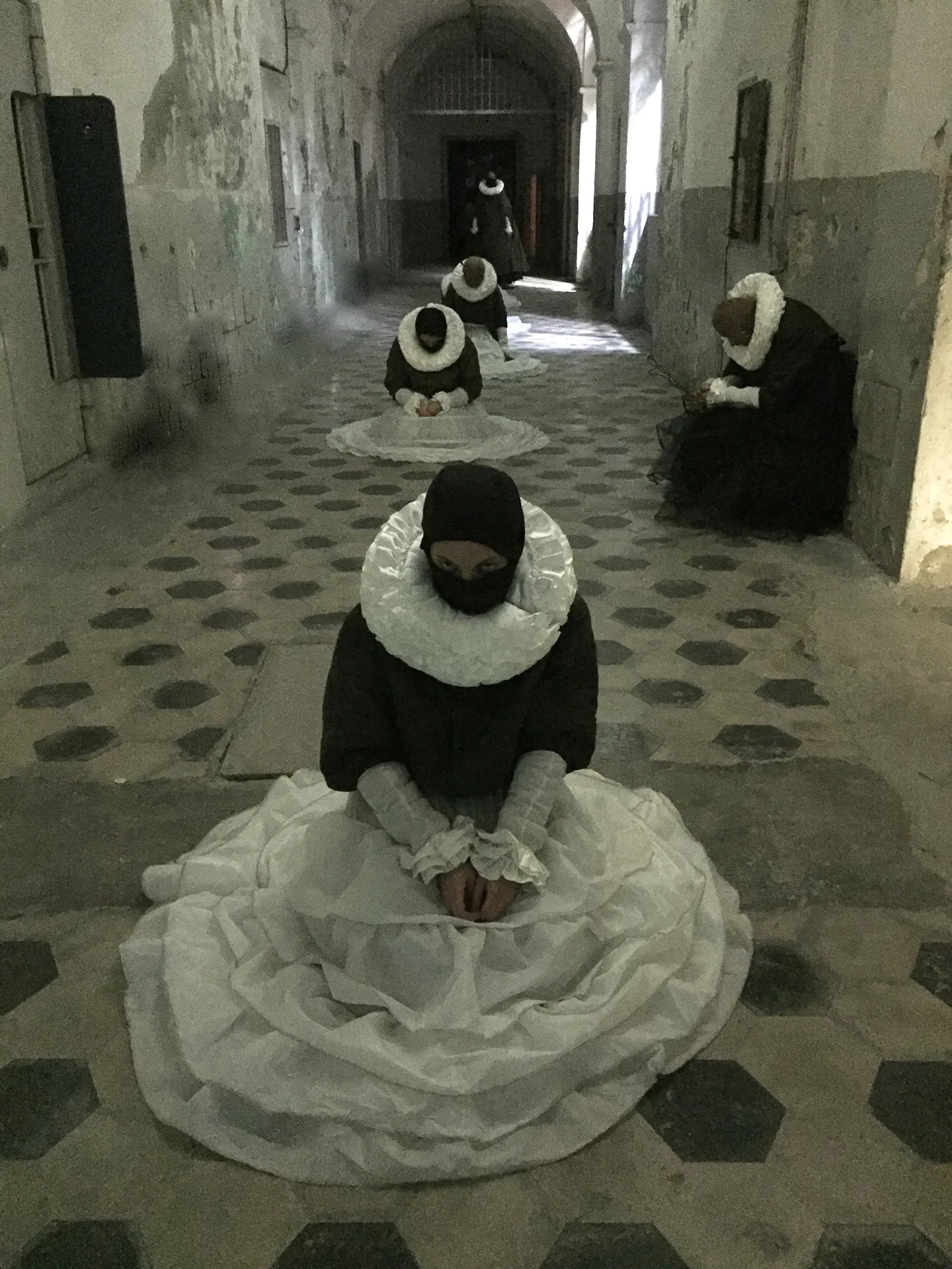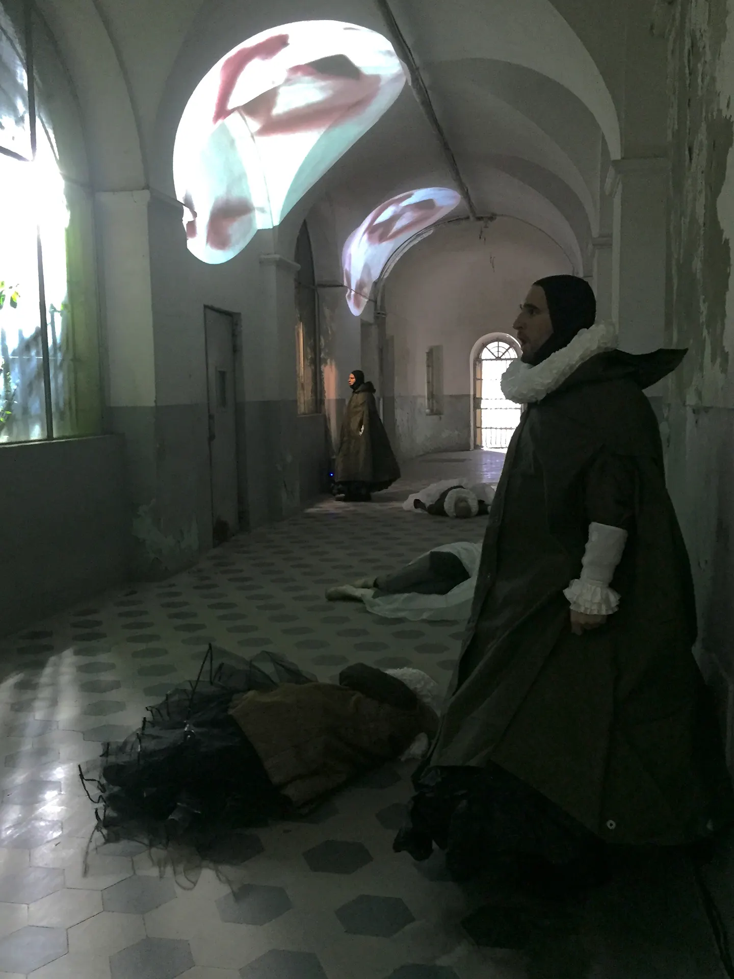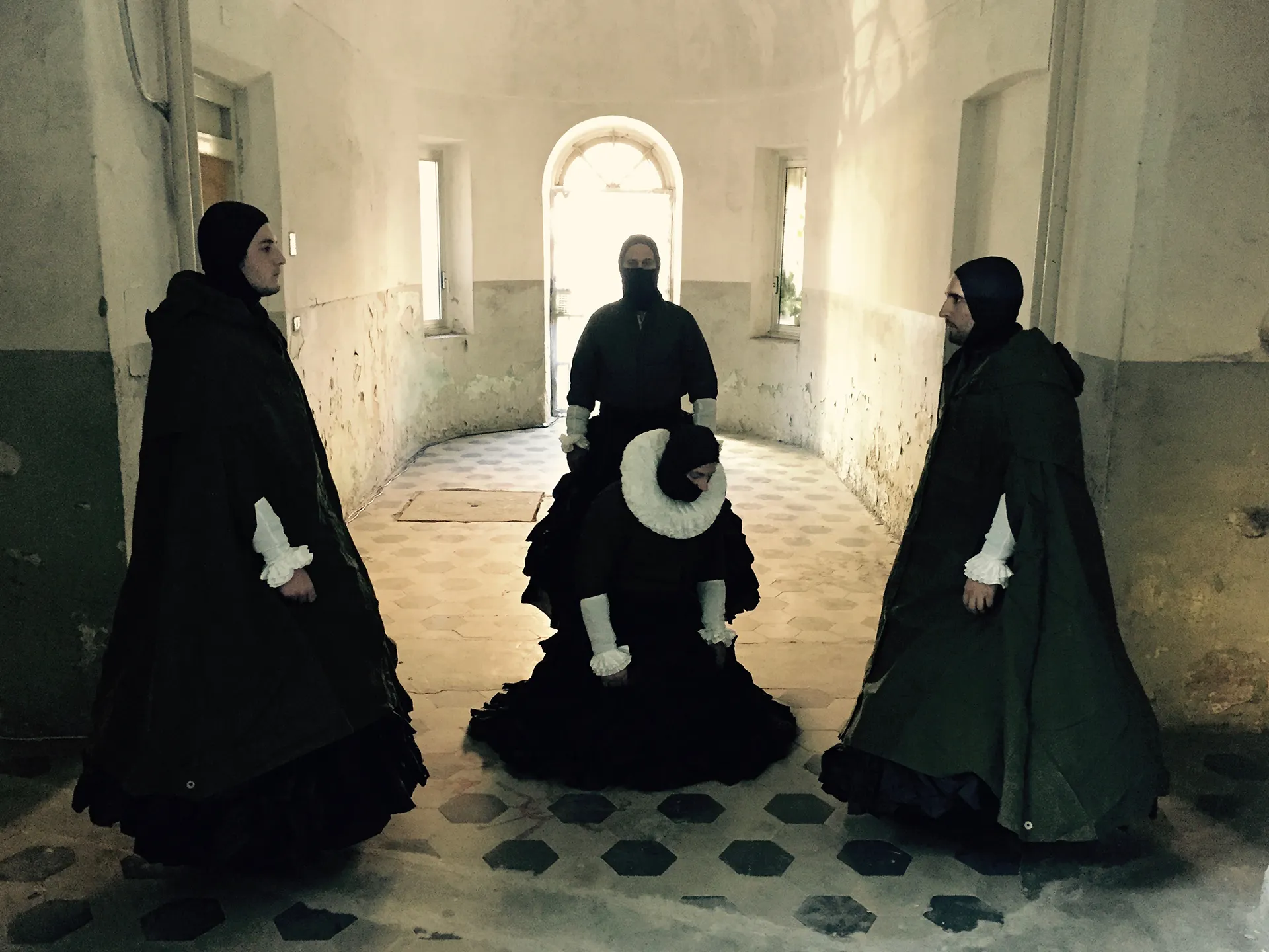 Inquisizione deriva dal verbo latino inquirere, che significa investigare, indagare, infine ricercare. Abbiamo ricercato un luogo che potesse essere impregnato di storia e sofferenza umana, voci e lamenti penetrati nelle mura e risonanti come echi, adatto alla moltiplicazione di frammenti cantati come ritorni vocali dall’opera intera, di cori intonati da coristi reclusi in cellette, visitato da spettatori itineranti come popolo di un moderno autodafé, agito da corpi d’attore pronuncianti astuzie per confessioni da estorcere, specchiato da un’imagoturgia che, come in una sfera di cristallo, potesse riunire il presente e il passato come in un giardino dei lamenti con, sovraimpresso, un Giardino delle Delizie.