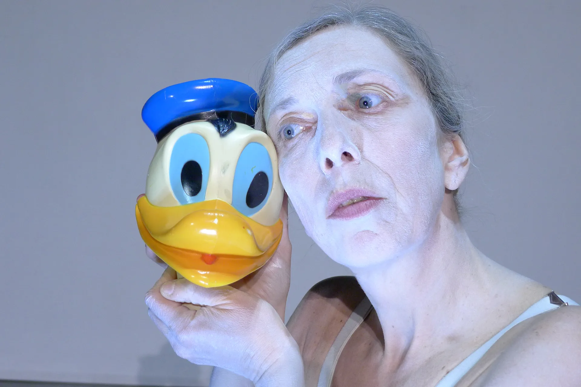 “Intorno il coro degli spiriti/Il nuovo che viene si sente appena/Esistere, appena è la nuova/Vita che esiste, e già è uguale/Alle schiere sante. Vedilo,/come dai lacci di terra,/dall’antico costume si spoglia/e dal nuovo, dall’etere riesca/la forza prima di gioventù!/Fa che io gli insegni:/il giorno nuovo brucia ancora gli occhi suoi.”Così per File e Bau, già presenti nell’Ur, la trasfigurazione sarà per nuovi corpi d’attore, nuovi paesaggi scenici in cui i chiaro-scuri dell’originario tragico assumeranno, qui, i colori vivaci di una contemporaneità post-pop e disneyana. Nel caos immaginifico e fantasmagorico del Faust II, così aderente all’affresco di Goethe, entrerà per intenzionale vendetta postuma e nostalgia degli streben giovanili un frammento dell’Iperione di Friedrich Hölderlin,:“Che cosa è l’uomo?/Com’è possibile che esista/Una cosa/che fermenta, e bolle come un caos!/O che diventa marcio come un albero marcio?/E mai è maturo./Come può Natura sopportare/Quest’uva acida/Proprio in mezzo alle dolci uve? – Non disturbate l’uomo./Sin dalla culla./Non strappatelo dalla sua gemma chiusa,/non strappatelo dalla sua capanna di bambino!/Non preoccupatevi di lui, perché non senta la vostra assenza/E così da solo trovi la sua differenza!”