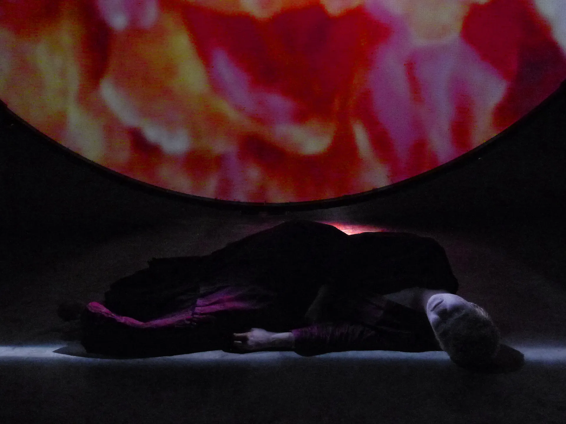 Dall’Hyperion di Friedrich Hölderlin, il personaggio del celebre Simposio è protagonista della nuova creazione firmata da Lenz Rifrazioni e dal musicista polacco Paul Wirkus. Straordinaria manifestazione del pensiero platonico (fu colei che avviò Socrate al vero amore ideale) e polo femminile dello scambio epistolare con l’amato Iperione nel romanzo di Hölderlin, Diotima è «figura tra le più complesse della mitografia hölderliniana». Maria Federica Maestri e Francesco Pititto tornano dunque a indagare il «poeta, filosofo, drammaturgo romantico tedesco» dopo «la messinscena delle tre stesure de La Morte di Empedocle, Edipo il tiranno, Antigone, Hölderlin-Foscolo, L’era dei querci» tra 1991 e 1994. Un rinnovato interesse che, non a caso, avviene all’interno del progetto triennale del Festival Natura Dèi Teatri ispirato a «suggestioni filosofiche tratte dall’opera di Gilles Deleuze», perché la tematica della differenza, dell’ideologica concezione di identità e ripetizione, del tentativo di rivolta contro un destino dialettico dagli esiti omologanti e laceranti, è la cornice concettuale ideale per porre la fondamentale questione di «indagine approfondita sui linguaggi della creazione contemporanea». Le sonorità elettroniche dal vivo di Paul Wirkus contribuiscono a dare corposa densità all’ambientazione di un allestimento splendidamente semplice e dall’impatto visivo esemplare per come riesce a restituire nel segno (scenografico) la perfetta coincidenza di significato e significante, avvalorando così la piena potenza dell’affermazione nietzschiana «non esistono fatti, solo interpretazioni» e la radicalità di una intuzione che riconosceva all’interpretazione (inter)soggettiva la capacità di plasmare le coscienze e disciplinare i corpi. Una intuizione ribadita quasi esplicitamente in scena («Dimentica il tempo, e non contare i giorni della vita. Che cosa sono i cento anni di fronte all’istante in cui in due ci sentiamo e solo dopo ci tocchiamo») e che ancora oggi risulta attuale (dunque storicamente inattuale), pur svilita nell’idea che – parafrasando quella citazione – esistano solo opinioni e non argomentazioni. Il telo rotondo, bianco e teso che Valentina Barbarini attraversa concentratissima, mentre declama frammenti ritradotti dall’Hyperion, è la rappresentazione sublimata della pienezza dell’essere parmenideo in tutta la sua paradossalità (empirica). Indivisibile e perfetto, immobile e identico (per la ragione), appare (ai sensi) agìto da una incongruenza insanabile per la presenza di quell’umano in divenire che, infatti, vedremo fisicamente e non proiettato. Dunque concreto, fuori e non dentro (se non come ombra), perché al suo interno potranno unicamente scorrere le immagini di una Natura da cui l’uomo – insopportabile «uva acida … in mezzo alle dolci uve» – risulta bandito. Maieutica ed erotica, potenza creativa dell’arte e della natura in conflitto con un homo che, proclamandosi sapiens, ha dimenticato la propria animalità, in Diotima / Hyperion di Lenz vediamo convergere la ricerca drammaturgica con l’indagine a favore di una rinnovata restituzione visiva di dilemmi esistenziali primordiali: l’anelito di infinito che tormenta strutturalmente l’essere umano e il suo inevitabile naufragio («Ma l’uomo è dio appena uomo! E se è un dio, allora lui è bello! [..] Ma le mie braccia erano sempre più stanche e l’angoscia mi trascinava giù, inesorabile»); la brama di una panteistica armonia («là stavo io, la tua. Un fiore tra i fiori») e la percezione della sconfitta storica nella modernità («Difenderci dalla mosche sarà la nostra futura occupazione. Rosicchiare le cose del mondo, come bambini. Invecchiare tra i vecchi è la cosa peggiore. Partono dal cuore e tornano al cuore, le vene»). Diotima è allora il simbolo intimamente contraddittorio del rischio del disimpegno e della solitudine («Che m’importa del naufragio del mondo! Non conosco altro che la mia isola beata»). Un rischio che, visto all’interno di questo specifico contesto artistico, «un edificio industriale della periferia storica di Parma» dove la cultura oltre a resistere continua a darsi, sembra affatto avvilire, quanto dispensare forza e passione. Esattamente come quel canto di speranza e bellezza che fu Diotima per Iperione. Uno spettacolo di una coerenza disarmante.