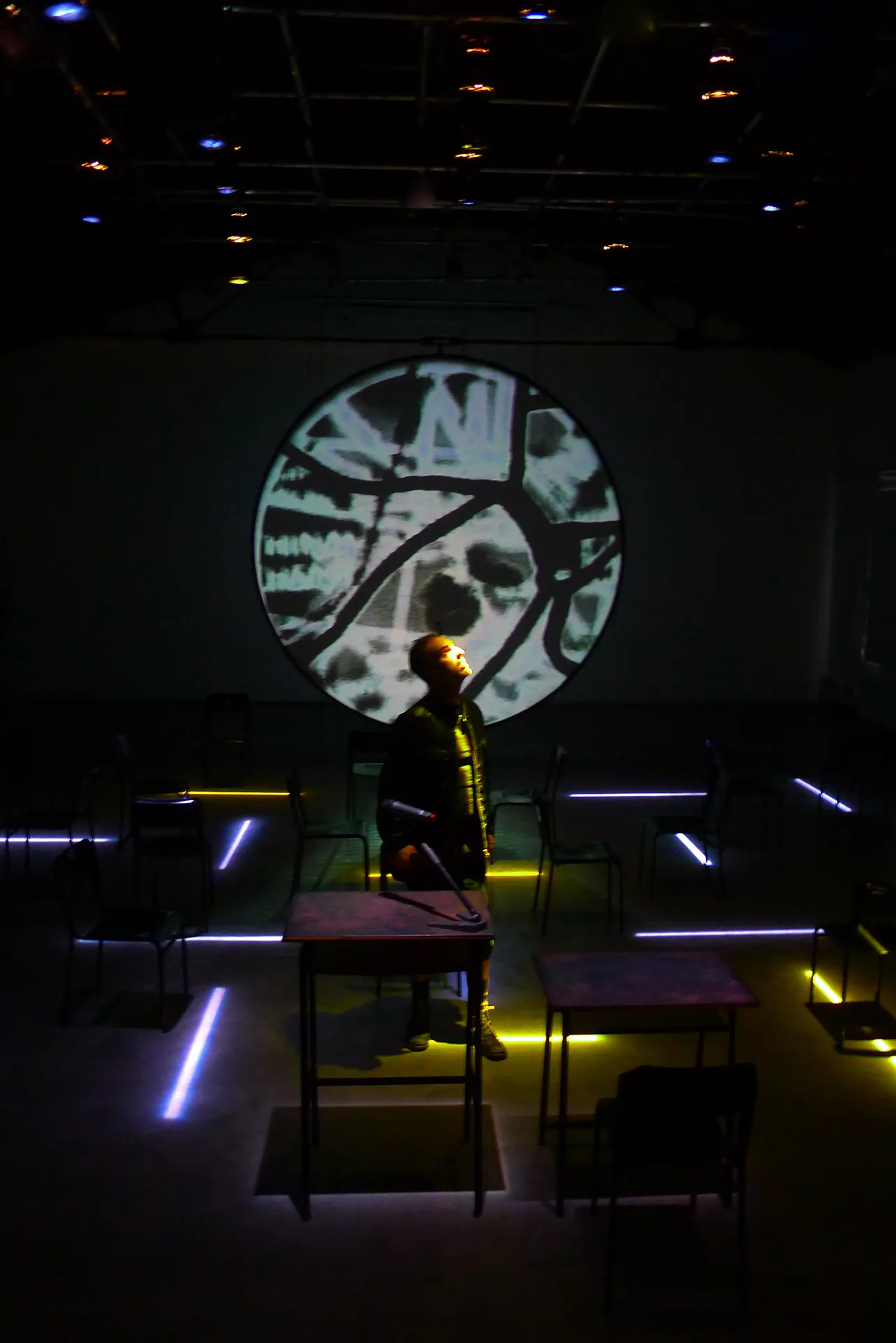 Dopo diverse incursioni drammaturgiche in altre creazioni – Faust 2, Chaos, nel 2014 i registi ritornano all’autore amato, con Hyperion/Diotima una performance visuale e musicale ispirata a Diotima, figura tra le più complesse della mitografia hölderliniana e protagonista del dialogo filosofico-amoroso con il giovane Iperione. Con Hyperion #2 si intende dare più ampio respiro progettuale al lavoro scenico-musicale iniziato lo scorso anno con la residenza artistica di Paul Wirkus e la ripresa di un’importante collaborazione con Adriano Engelbrecht, poeta, musicista, performer, artista versatile e poliedrico, per lungo tempo organico al percorso creativo di Lenz ed interprete nel passato delle diverse scritture sceniche hölderliniane.