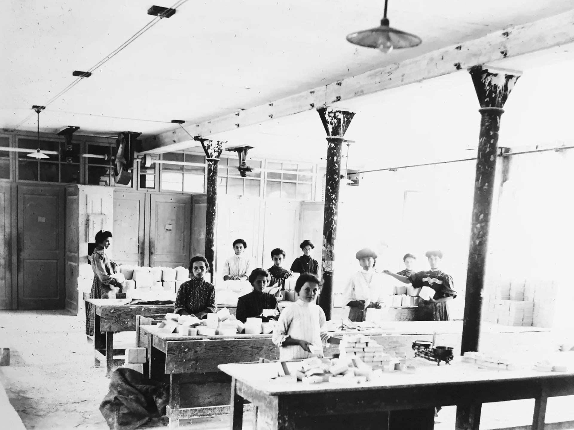 In 1930, Scedep purchased the property to install a production line for tinplate jars. The company continued to develop until the 1950s and as many as 110 workers worked in the plant, then it progressively reduced production, until 1976, when it definitively ceased operations.